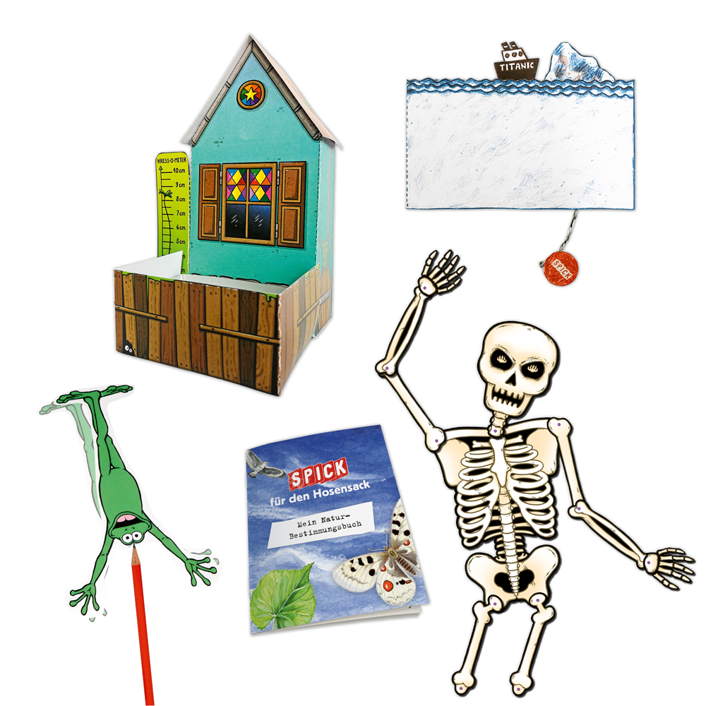 Mit dem SPICK Bastelbögen-Set 1 kommt Bastelspass garantiert nicht zu kurz! Die liebevoll gestalteten Bögen stammen aus dem SPICK-Jahrgang 2025 und laden Kinder ab 8 Jahren zum Schneiden, Falten, Kleben und Entdecken ein. Ob Naturforscher, Tüftler oder Abenteurer – hier ist für alle etwas dabei.